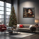 Dies ist ein detailliertes Bild, das den schwarzen Weihnachtsmann in einem schneebedeckten Wald darstellt. Der Weihnachtsmann trägt einen roten Hut, Handschuhe, Gläser und einen Gürtel. Die schneebedeckte Umgebung unterstreicht das Weihnachtsthema des Gemäldes. Das Kunstwerk besticht durch seine warmen Farben und die gemütliche Atmosphäre. Das Bild ist reich an Details und zeigt die faszinierenden Merkmale des Weihnachtsmanns, wie er im schneebedeckten Wald steht.