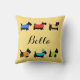 Passen Sie dieses dekorative Kissen an, um Ihre Liebe von Scottish Terrier Hunden zu zeigen und personalisiert mit dem Namen Ihres Hundes oder anderen Worten in der Mitte. Das farbenfrohe Design ist auf beiden Seiten des Kissens. Diese niedlichen und bezaubernden Scotties tragen verschiedene farbenfrohe Hundeschwitzmäntel oder T-Shirts und einer hat einen Schlittenhut. Die Farbtöne sind rot, lavender, lila, gelb, türkisblau, aquamarin blau, lila grün und orange mit Pfotendrucken, Sternen, Streifen, Karos und Schneeflocken. Diese skurrilen und trendigen Hunde sind originelle Kunst von Phyllis Dobbs und werden das Herz eines Hundeliebhabers schmelzen. Der Hintergrund ist gelb, um sich mit jeder Zuhause, die Farbe oder Stil dekoriert. Diese Haustiere sind sowohl einzeln als auch auf farbenfrohen Blöcken mit Grenzen zur Produktkoordination. Alle sind vollständig anpassbar, um es zu Ihrem eigenen zu machen!