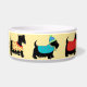 Passen Sie dieses Hundefuttergericht an, um Ihre Liebe von Scottish Terrier Hunden zu zeigen und auf gelbem Hintergrund mit dem Hundenamen in der Mitte zu personalisieren. Das farbenfrohe Design besteht aus 6 schwarzen schottischen Hunden in einer farbenfrohen Auswahl an Hundekleidung und auf einem roten Hintergrund. Diese niedlichen und bezaubernden Scotties tragen verschiedene farbenfrohe Hundeschwitzmäntel oder T-Shirts und einer hat einen Schlittenhut. Die Farbtöne sind rot, lavender, lila, gelb, türkisblau, aquamarin blau, lila grün und orange mit Pfotendrucken, Sternen, Streifen, Karos und Schneeflocken. Diese skurrilen und trendigen Hunde sind originelle Kunst von Phyllis Dobbs und werden das Herz eines Hundeliebhabers schmelzen. Diese Haustiere sind sowohl einzeln als auch auf farbenfrohen Blöcken mit Grenzen zur Produktkoordination. Alle sind vollständig anpassbar, um es zu Ihrem eigenen zu machen!