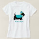Passen Sie dieses T-Shirt an, um Ihre Liebe von Hunden zu zeigen. Der personalisierte Name Ihres Hundes mit dem Wort "Mama" steht unter der Hundekunst und kann in Ihre eigenen Worte geändert werden. Dieses skurrile schwarze Scottie Terrier trägt ein türkisfarbenes Aqua oder einen aquamarinen blauen Pullover, der mit einem Lavendel und Linde-grünen Akzenten dekoriert ist. Der schottische Hund trägt einen Rodelschwanz in den gleichen Farben für einen türkisfarbenen und lavendelfarbenen Streifen mit Hunden auf der Manschette. Dieser niedliche, kuschelige und trendige Hund ist eine originelle Kunstkunst von Phyllis Dobbs und wird das Herz eines Hundeliebhabers schmelzen. Diese Scottie ist eine von 6 Scotties auf mehreren Produkten und alle sind vollständig anpassbar, um es zu Ihrem eigenen zu machen!