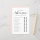Braut oder Bräutigam? Rate mal, wer es gesagt hat! Fügen Sie dieses lustige und spielerische Spiel Ihrem Brautparty hinzu. Es enthält ein schwarzes whimsical Skript, klassische Typografie, rot-rosa Hintergrund. Sie können die Rückseite dieser Brautparty-Spielkarte personalisieren. Diese Vermutung, wer Spielkarte ist perfekt für jedes Brautparty Thema und Saison.