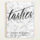 Chic Spiralplaner oder Terminkalender für einen lash Künstler mit in einem schwarzen Skript geschriebenen Wimpern über einen Marmorhintergrund in weiß und grau. Fügen Sie Ihren Namen in eleganten schwarzen Buchstaben hinzu.