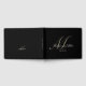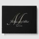 Elegantes Schwarz-Weiß-Monogramm mit Braut- und Bräutigam-Namen und Datierung Hochzeitsgast-Buch. Schwarz mit weißem und grauem Skript und schlichtem kursivem Text. Front - Braut- und Bräutigam-Namen in weißem Skript-Overlay ein großes graues Skript-Monogramm, Hochzeitdatum unten in weißem schlichten kursiven Text. Kleines Monogramm auf der Rückseite. Spine mit Braut und Bräutigam und Buchtitel in schlicht kursivem Text.