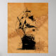 Schwarze Silhouette eines klassischen Mehrsegelschiffs und eine Vintage Seekarte der Florida Keys Islands.