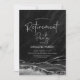 Schwarzes Silber agiert die Party Einladung der Pensionierung. Elegantes modernes Design mit Aquarellfarben-marmorgeode Hintergrund, Imitate Glitzer Silber und Typografie Skript-Schriftart. Trendy Einladungskarte perfekt für eine stilvolle Frauenfeier. Gedruckte Zazzle Einladungen oder Sofortdownload digitalen druckbaren Vorlage.