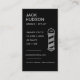 Mit dieser eleganten, schwarz-silbernen Visitenkarte für Friseure, Friseure und moderne Pflegekräfte machen Sie einen kühlen ersten Eindruck. Mit einem vertikalen Layout, einem minimalistischen Stabsymbol und einem scannbaren QR-Code für Sofortbuchung oder sozialen Zugang ist dieses Design ideal für stilvolle, digital vernetzte Geschäfte. Vollständig anpassbar mit Ihrem Namen, Kontaktinformationen und Social Handle.