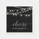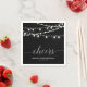 Mit dieser personalisierten Serviette aus Party fügen Sie Ihrem besonderen Tag stilvolle Details hinzu. Dieses Design zeichnet sich durch moderne schicke Saitenleuchten und die Typografie "Cheers" in Silber und Schwarz. Passende Geburtstagsfeiereinladungen und Party-Zubehör sind in meinem Shop BaraBomDesign erhältlich.