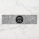 Frohe Weihnachtswasserflaschen-Etiketten in Schwarz und Weiß mit silberfarbenem Glitzer-Muster.