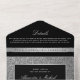Machen Sie eine kühne und elegante Aussage mit dieser schwarzen und silbernen Hochzeitseinladung. Mit Imitaten, Details zum silbernen Glitzer, klassischen schwarzen Panels und einer passenden Umschlagklappe, beinhaltet diese All-in-One-Einladung Platz für Ihre Hochzeitsinfo, UAWG und sogar ein Foto des Paares. Ideal für Hochzeiten im Winter oder im Winter. Wichtig: Diese All-in-One-Einladung erfordert einen separaten Umschlag für das Mailen.