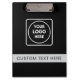 Showcase your brand with this black and silver professional business clipboard. Customize it with your company logo, name, or text template for a sleek and modern promotional tool. Perfect for corporate teams, small businesses, real estate agents, and trade show events. This minimalist clipboard combines style and professionalism to enhance your brand identity.