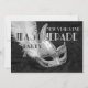 Eine festliche Party Einladung mit Maskerade in Schwarz und Weiß mit einer silbernen Maske auf schwarzem Samthintergrund. Diese Vorlage ist für ein Silvesterabend-Party, einen Geburtstag oder einen anderen Anlass anpassbar.