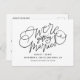 Schwarz und Weiß Modernes Drehbuch Wir heiraten Simple Calligraphy Ankündigung Datum freihalten Postcard