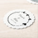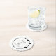 Set von 6 runden, absorbierenden Pulp-Board-Getränkekittern für Polterabende, Hochzeitsfeiern und sogar Proben-Dinners, die ein schwarzes, schlichtes Herzkrautdesign, Braut- und Bräutigam und das Hochzeitstermin in schwarzer, stilisierter Schrift aufweisen. Bearbeiten und ersetzen Sie Namen und Datum mit Ihrem eigenen.