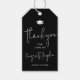 Einfach und lustig Gold moderne Drehbuch auf schwarzem Hintergrund, großes personalisiert Dankeschön Sie bevorzugen Tags für Abschlussfeier.