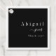 Modernes, minimalistisches Skriptnamen-Design auf farbeditierbarem schwarzen Quadrat Hintergrund, benutzerdefinierte Ihren eigenen Namen und Dankeschön Text, einfach und elegant, große Luxus berufliche Custom danke Ihnen Tags, Geschenkmarken und mehr.
