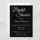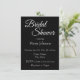 Einfache Stil, Brautduscheinladung mit einem trendigen, schwarzen Hintergrund, dem Namen und der Veranstaltungszeit der zukünftigen Braut, dem Ort, dem Kontakt usw., in weißer, stilisierter Schrift gedruckt. Personalisieren Sie Ihre Einladung, indem Sie Text durch eigene Brautparty-Informationen ersetzen. Wählen Sie Ihre Einladung Papier Stil und Quantität.