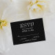 Einfache RSVP-Karte für Hochzeiten und besondere Events in solidem Schwarz zusammen mit Ihrem Veranstaltungsdatum in weißer Schrift. Passen Sie Ihre Karte an, indem Sie das Datumsfeld mit Ihrem eigenen Ereignisdatum bearbeiten. Wählen Sie Ihren Papierstil aus.