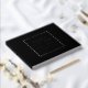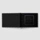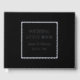 Solid schwarze Farbe, einfaches Gästebuch für Hochzeiten mit stilisierten Foliendrucken innerhalb eines quadratischen Rahmens, der den Namen der Braut und des Bräutigams sowie das Hochzeitdatum in Ihrer Wahl der Farbfolie enthält. Hier in Silberfolie gedruckt. Wählen Sie Ihren Gastbuchstil aus.