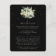 Eine schwarze, flache Eintrittskarte für Hochzeitsfeiern, die an einem anderen Ort als der Hochzeitsfeier abgehalten wird. Auf der Karte befinden sich ein eleganter Bouquet/eine Pose aus handgemalten Snowberries und Eukalyptus-Beeren vorne und ein Kranz auf der Kartenrückseite. Alle Texte sind vollständig editierbar und die verstreuten Punkte auf der Vorder- und Rückseite können vor der Bestellung gelöscht werden, wenn Sie es vorziehen. Diese Karte ist mit alternativen botanischen Designs, in einem Landschaftsformat und in verschiedenen Farben erhältlich. Bitte schauen Sie sich die Sammlung in meinem Geschäft an, um alle Optionen und Koordinationsgegenstände zu sehen.