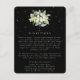 Eine schwarze, flache Hochzeitszimmerkarte für Informationen zu Hochzeitsreisen oder für den Weg, wenn Ihr Empfang sich an einem anderen Ort befindet. Mit einem Bouquet/einer Pose aus handgemalten Snowberries und Eukalyptus auf der Vorderseite und einem Kranz auf der Rückseite der Karte. Alle Texte sind vollständig editierbar und die verstreuten Punkte auf der Vorder- und Rückseite können vor der Bestellung gelöscht werden, wenn Sie es vorziehen. Diese Karte ist mit alternativen botanischen Designs, in einem Landschaftsformat und in verschiedenen Farben erhältlich. Bitte schauen Sie sich die Sammlung in meinem Geschäft an, um alle Optionen und Koordinationsgegenstände zu sehen.