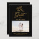 Begin your love story with elegance and sweetness. Our 'Save the Date' card sets the perfect tone for a memorable journey that will be cherished forever. Featuring a black background with exquisite faux gold accents, this card exudes an even more elegant and sophisticated vibe.