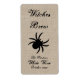 An eerie black spider haben wir rustic burlap background decorates this personalized wine label for Halloween. It can easily be customized to decorate beer or water bottles.