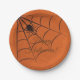 Orangefarbene Papiertüte mit Web und schwarzer Spinne. Fühlen Sie sich frei zu ändern, und fügen Sie jeden Text oder Bild.