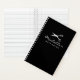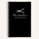 Schwarzes Spiralheft für Friseur oder Friseur. Personalisieren Sie Ihre Bestellung mit Ihrem Firmennamen oder Ihrem Firmentitel. Elegantes Schriftzeichen-Design mit Friseurschere Logo.
