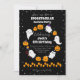 Schwarze Kinder Halloween Geburtstagsfeier Einladungskarte mit einem niedlichen und spukhaften Design.