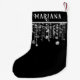 Schwarz-Weiß-Saiten beleuchten den Weihnachtsfest-Strumpf der Glitzern mit niedlichen, skurrilen Lichtern und Namen für eine festliche Urlaubssaison.