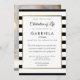 Mit einem klassischen Schwarz-Weiß-Streifenhintergrund besticht dieses Fest der Lebensbeerdigung durch eine elegante Imitat-Goldfolie, die das Details-Set in schicker Typografie und ein spezielles Foto auf der Rückseite umrahmt. Entwickelt von Thisisnotme©