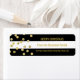 Weihnachtsadressen-Etiketten mit schwarz-weiß Streifen Muster und festliche goldene Konfetti.