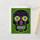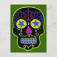 Der schwarze Zuckerschädel auf der Postkarte. Die Hintergrundfarbe kann angepasst werden.