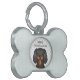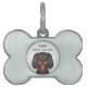 Desteis originelle Cartoon-Illustration einer niedlichen Schwarz-Bein-Farbe Cavalier König Charles Spaniel züchten Hund. Es gibt auch einen personalisierbaren Textbereich für einen Namen und eine Telefonnummer. Der Hintergrund weist ein Muster grauer Hundepfoten auf.