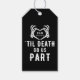 Wedding gift tags with the quote "'Til death do us part" and a skeleton heart. Black party supplies with an editable date and the bride and groom's initials. Be sure to visit our collection to see more coordinating items and an invitation suite that matches this design.