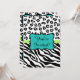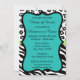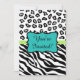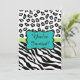 Passen Sie diese raffinierte Einladung für Ihr Party, Mittag- und Abendessen, Ihre Meetings oder andere Veranstaltungen an. Das Design besteht aus schwarz-weißen Zebrastreifen und Leoparden (Geparden), die für ein modernes Design kombiniert werden. Ein türkisfarbenes, aquamarines blaues Emblem, das in Schwarz umrissen ist, sitzt auf einer limiengrünen Bar und schafft einen Personalisierungsbereich mit "You're Invited"-Wörtern, die auf andere Begriffe zugeschnitten werden können. Die Rückseite der Einladung enthält Felder für alle Ihre Informationen für Ihre Veranstaltung. Sie können Felder nach Bedarf ganz einfach ändern und löschen. Die Farben sind weiß, schwarz, türkis und lila grün. Wilde Tierfelle für Grafikdesign gehören zu den heißesten Trends von Kunst und Design und sind von Mode zu Wohngestaltung sehr beliebt. Diese ausgeklügelte Zebra- und Leopardruckkollektion ist eine von mehreren Farbkombinationen, die für Ihre Einladungen zur Verfügung stehen. Machen Sie sich mit diesen wilden Skins-Designs frei!