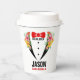 Black Tuxedo Red BowTie & Trauzeuge Texto Papier C Pappbecher