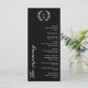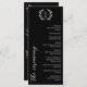 Elegantes, schwarzes 9x4 Hochzeitsprogramm in Schwarz-Weiß-Typografie-Design mit einem Lorbeer-Monogramm und schönen Schriftart. Schwarzes typografisches Hochzeitsprogramm mit einem grünen Monogramm und schönen Schriftart. Flat Hochzeitsprogramm mit einem eleganten Monogramm und schönen Schriftart und grünen Details in Weiß vor einem schwarzen Hintergrund.