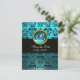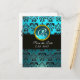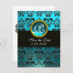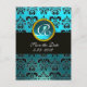 BLACK UND BLUE TURQUASE DAMASK GEM Monogramm Ankündigungspostkarte