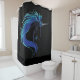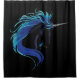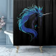 Ein Profil eines schwarzen Einhorns mit blauer Mähne und Silberhorn