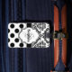 Klassisches und klassisches Schwarz-Weiß-Damast-Muster mit niedlichem Polka-Punktmuster. Grafisches Design mit einem Retro-Typenschild mit Monogramm Anfangsbuchstaben und Vornamen. Elegantes trendiges Geschenk für Mädchen und Frauen.