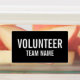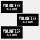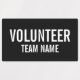 Black Volunteer Abzeichen Labels mit dem Titel "Volunteer" und Teamname in weißem, fett formatiertem Schriftart auf schwarzem Hintergrund. Auch perfekt für Praktikanten, Crew, Mitarbeiter, Gruppe, Team und vieles mehr.