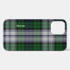 Handsome iPhone 12 Gehäuse aus dem dunkelblauen, weißen und grünen Black Watch Dress tartan kariert. Personalisieren Sie den weißen Text, indem Sie die links Seite hinunter laufen, für sich selbst oder als großartige Geschenkidee. Stilvolle Art, Ihr elektronisches Gerät zu schützen.