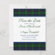 Scottish Black Watch tartan oder Campbell tartan keltischen Hochzeit speichern Sie das Datum Ankündigung Karte. Dieser schwarze Wachtartan wird im Allgemeinen als der ursprüngliche militärische Tartan oder Regierungssitz bezeichnet. Das keltische Design der Black Watch ist genauso wie der offizielle Campbell-Tartan und gilt als "universeller Tartan", d.h. jeder trägt es frei. Schließen Sie sich mit Ihren schottischen Wurzeln mit einem tartanischen Hochzeitsthema wieder an.