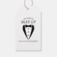 Machen Sie Ihre Hochzeit unvergesslich - Fügen Sie eine persönliche Touch mit einem Trauzeuge Geschenketikett mit einem schwarzen Tuxedo Anzug und Bugs Krawatte-Abbildung, mit einer Vorschlag-Nachricht in einem klassischen Serif-Schriftart auf der Vorderseite. Auf der Rückseite befindet sich eine anpassbare Meldung.