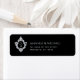 Ein elegantes Schwarz-Silber-Design mit einem Hochzeitsmonogramm aus den 2 Initialen der Braut und Bräutigam, in einem Vintagen Imitat silberne Folie Wappen, vor dem Namen und der Adresse, in grau geschrieben.