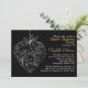 Black & Gold Whimsical Bläserherz 16 . Geburtstag Geburtstag Einladung Whimsikale Illustration einer weißen Herzsaite mit Blume, Blattwerk, Vogel und anderen Designdetails auf einem schwarzen Hintergrund. Diese Einladung wird sich perfekt für die Party im Winter, in der formalen oder skurrilen Thematik eignen.