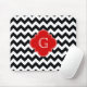 Black White Chevron Red Quatrefoil Monogram Mousepad