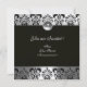BLACK & WHITE DAMASK MONOGRAM Silbermondstein Einladung
