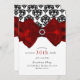Black & White Damask Red Bow Glam Sweet 16 Party Einladung